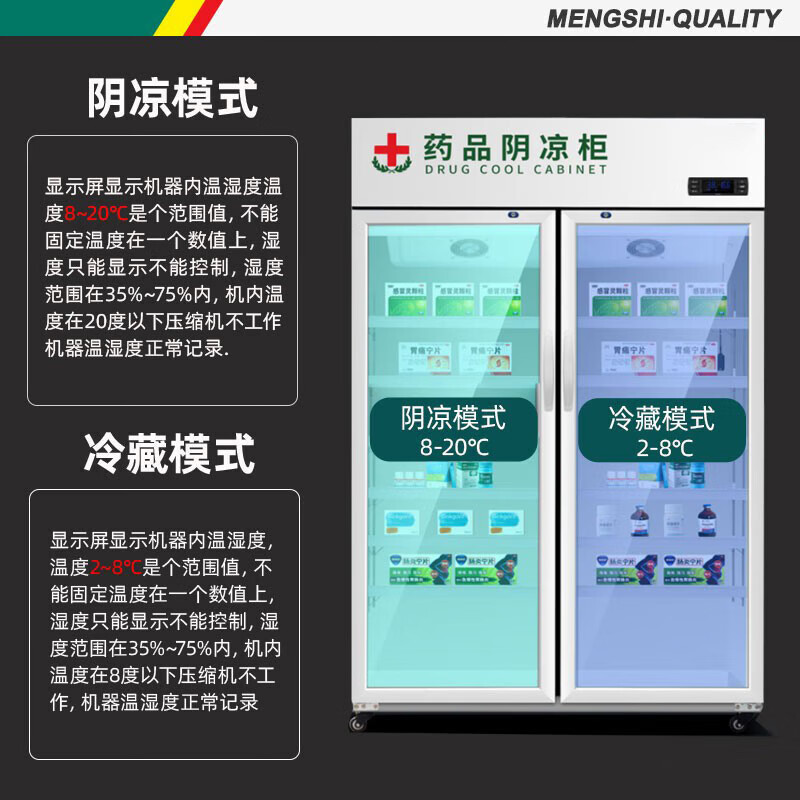 猛世药品展示柜药房药物保温柜风冷单门上机组铝合金门400L冷藏药品阴凉柜MS-SFL400L